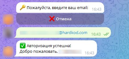 В начале необходимо пройти авторизацию — ввести почту. Доступ к боту получают только те логины, которые указал клиент. Это не исключает доступ к боту сторонних лиц, но так как никакой конфиденциальной информации узнать в нем нельзя, то клиент попросил именно такой способ авторизации.